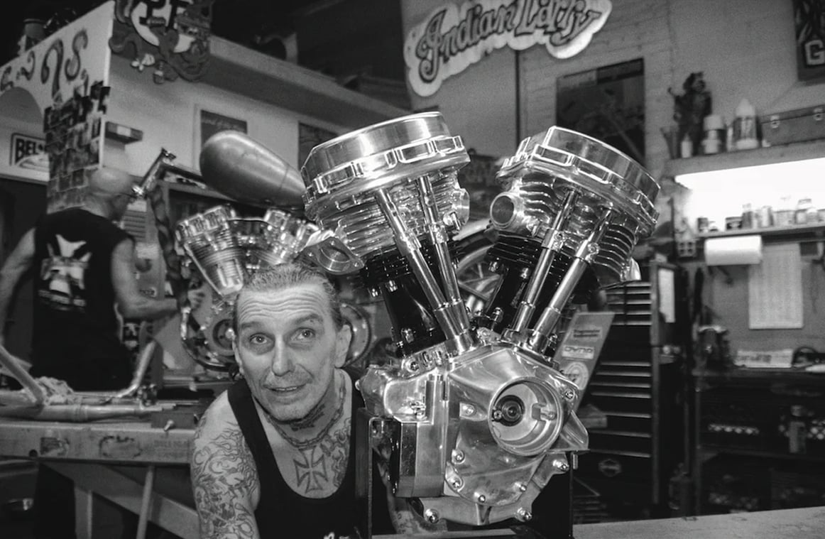 Indian Larry was a born and raised New Yorker who discovered his passion for mechanics at a very early age. He drew inspiration from motorcycle clubs of the ‘50s and ‘60s, artist Ed “Big Daddy” Roth, and clothing designer Von Dutch. Larry was a skilled machinist, metal sculptor, and master motorcycle mechanic who developed his own signature style – a blend between classic choppers and hotrod race bikes built to rip through the streets of NYC.