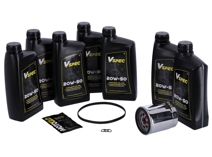 Perfect for home-mechanics and workshops alike, our new Oil Service Kits contain everything you need for a hassle-free oil and filter change in one convenient box. Complete with the correct specification and volume of premium Vspec oil for your bike, a choice of black or chrome oil filter and drain plug o-ring… We even supply a detailing wipe for clean-up duties!