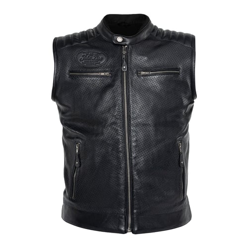 The John Doe Storm leather vest combines classic biker style with functional versatility and high-quality workmanship. Made from robust cowhide (1.1-1.3 mm), it offers an authentic design with well thought-out details for maximum comfort, both on the motorcycle and in everyday life. Thanks to the perforated construction of the leather, the Storm leather vest remains breathable and is therefore also suitable for warmer summer days.