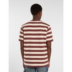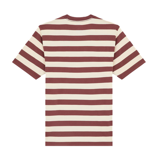 The Dickies Rivergrove t-shirt is a regular fit short sleeved t-shirt. The classic crewneck t-shirt made of BCI certified cotton jersey, featuring the woven Dickies label on the chest and all-over horizontal block stripes. A simple soft cotton T-shirt with a collegiate feel.