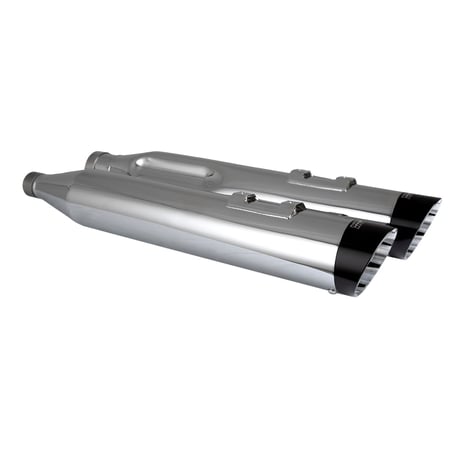 Built for riders who demand power and presence, the Razorback 450 slip-ons from Vance & Hines bring a fierce attitude with bold 4.5-inch mufflers that give your M8 bagger a deep, aggressive growl that commands attention. These slip-ons feature CNC machined billet end caps in a sharp angled design with striking contrast cuts that are convertible, allowing you to customize the look with the slash-up or slash-down angle.
