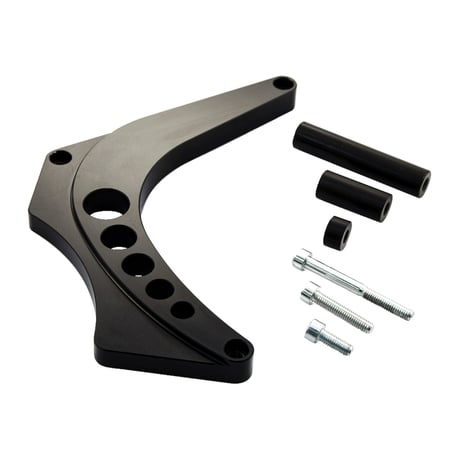 Replaces the stock plastic transmission pulley pulley guard. Black anodized CNC machined aluminum.